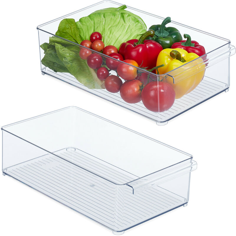 In un frigorifero disordinato è difficile tenere sott'occhio tutti gli alimenti e si finisce spesso per farli andare a male. Con l'organizzatore da cucina trasparente è possibile avere una visione d'insieme e creare ordine. Utilizza questo cassetto da frigo per conservare yogurt, frutta, formaggi e molto altro. I manici permettono di estrarre comodamente l'organizer dal frigo per avere sempre tutto a portata di mano. Può essere utilizzato anche in bagno per sistemare i detersivi. Contenitore per frigorifero in dettaglio - Dimensioni totali H x L x P: 10 x 20,5 x 36,5 cm ca. - Misure interne H x L x P: 9,5 x 20 x 34 cm ca. - Peso: 0,6 kg ca. - Materiale: plastica PE - Colore: trasparente - In set da 2 Organizzatore funzionale per la cucina - Per organizzare e conservare al meglio gli alimenti - Nella credenza per riporre pasta, spezie ecc. - Con manico per un facile utilizzo - Design trasparente per avere maggiore visibilità - Anche in bagno per sistemare in ordine i detersivi