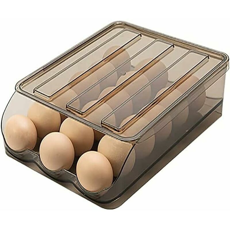 può essere impilato e riposto, ordinato e bello, risparmiando spazio, mantenendo il frigorifero in ordine, comodo e pratico. Ben visibile: il design del portauovo trasparente color caffè, l'intero uovo è chiaro a colpo d'occhio! Ogni strato può contenere 18-21 uova Questo contenitore per uova ha un design inclinabile di 7 gradi. Quando estrai un uovo, le uova rimanenti si srotoleranno automaticamente, quindi non dovrai aprire il coperchio quando estrai le uova la prossima