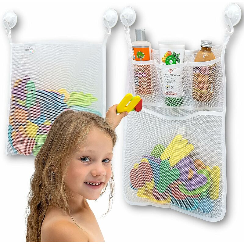 NIENTE PIÙ GIOCATTOLI A MUFFA! La nostra rete a rete super resistente è l'organizer ideale per i giocattoli da bagno perché la rete è appositamente distanziata in modo che molta aria possa circolare mentre tutta l'acqua defluisce. I giocattoli dei tuoi bambini rimarranno asciutti e puliti, non tutti viscidi e bagnati! VENTOSE IN CEMENTO: A differenza di alcune delle altre reti per organizer per il bagno, includiamo 6 ventose super resistenti invece di solo 4. Le nostre ventose si bloccano una volta spostato il gancio verso il basso, il che significa che la rete portaoggetti del bagno rimarrà attaccata al muro senza cadere costantemente! Per garantire la MIGLIORE ASPIRAZIONE possibile, assicurati solo che la superficie sia PIATTA e PARI ORGANIZZATORE MULTIUSO: Questa è la soluzione per riporre e organizzare il bagno che stavi aspettando! L'ampia tasca è perfetta per i giocattoli dei bambini (ne contiene una tonnellata!) e il secondo organizer ha una custodia e 3 tasche per sapone
