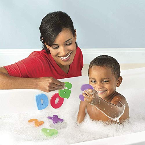 Giocattolo per il bagno per neonati: una volta bagnati, le lettere e i numeri in schiuma possono attaccarsi alla parete del bagno. I bambini godono del tempo della vasca da bagno con queste lettere e numeri galleggianti.