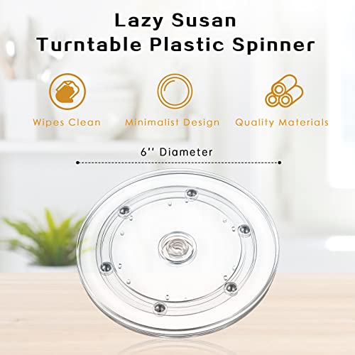 4 Organizer di Giradischi da 6 Pollici Vassoio Girevole in Acrilico Trasparente Base Girevole per Display Portaspezie Rotante Accessori da Cucina Portaoggetti per Spezie Torte Olio Tavolo