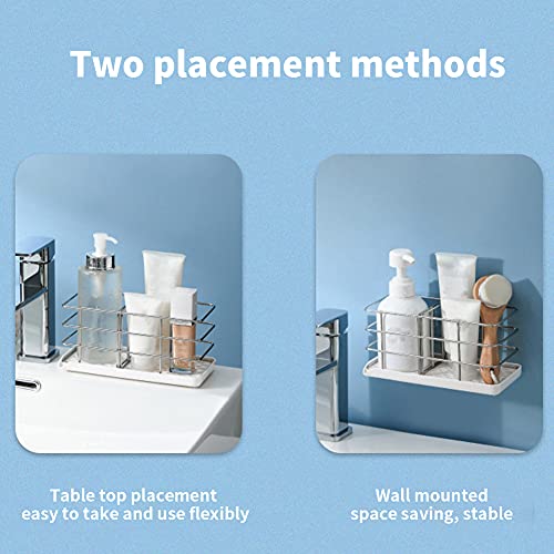 Organizer per Lavello Cestino,Autoadesivo Porta Spugne da Cucina,Portaoggetti da Lavandino con Vassoio per Gocciolatoio(Bianco)