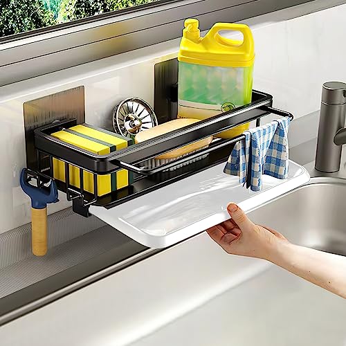 Organizer per Lavello da Cucina, Porta Spugna Cucina da Appendere, Porta Spugne Lavello Cucina Con Vassoio, Organizer per Detersivo Per i Bagni Della Cucina, Nero