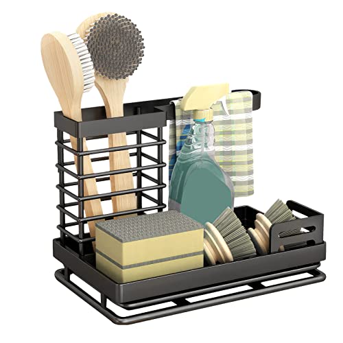Organizer per Lavello Cucina,Porta Spugne Acciaio Inox,Organizer Scaffale Sottolavello Nero,Organizer Sottolavello con Vaschetta Raccogligocce Estraibile,Organizer per Lavandino,Cucina,Bagno,Spugna