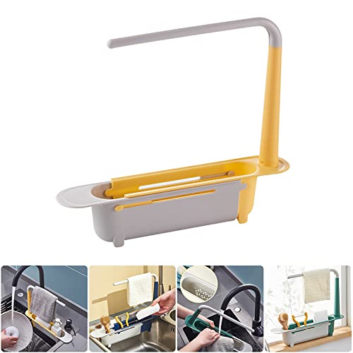 Organizer Lavello Cucina,Scaffale Telescopico per Lavello, Scolapiatti per Lavello Da Cucina Con Supporto per Strofinaccio Adatto per Cucina, Per Lavelli Da 23 - 40 cm (Giallo)