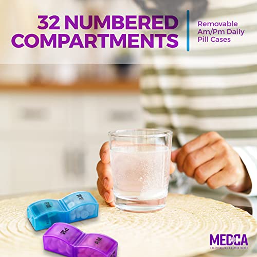 Organizer giornaliero per pillole da assumere la mattina/sera: facile da riempire e adatto a pillole di tutte le dimensioni, in modo da poter pianificare facilmente i farmaci da assumere la mattina/sera fino a un intero mese in anticipo. Ora, grazie al portapillole mensile MEDca, puoi mettere in borsa o nella tasca posteriore il singolo scomparto relativo alla giornata e non ti dimenticherai mai più di assumere le tue pillole!