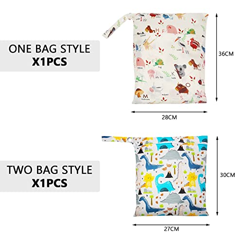 Organizer per pannolini per bambini, 2 pezzi, lavabili, riutilizzabili, con doppia cerniera, per pannolini, per la cura del giorno, per costumi da bagno, prodotti per bambini (dinosauri, lettere)