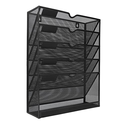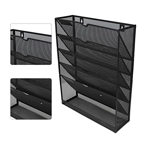 Organizer da parete a 5 ripiani, supporto verticale da appendere a parete, resistente in rete con 5 tasche, porta documenti per riviste, quaderni, pianificatori