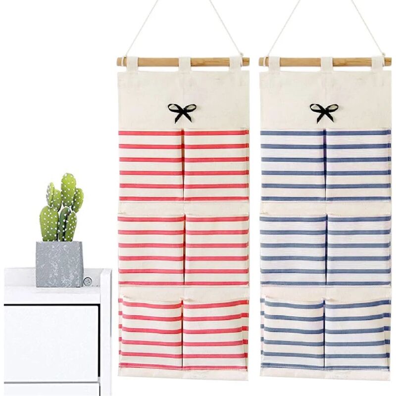 Tasca da appendere alla parete: la scatola portaoggetti sospesa non solo può organizzare il tuo oggetto, ma anche una barra di legno aggiunge un tocco retrò, decora la tua stanza per rendere elegante la tua casa. Realizzato in un tessuto più spesso, quindi è rigido e mantiene bene la sua forma quando è appeso al muro. Risparmio di spazio: mantiene la tua stanza ordinata e organizzata e trova i piccoli oggetti di cui hai bisogno. Quando non in uso, la borsa può essere ripiegata per riporla facilmente. Appendibile ovunque: palo di legno molto facile da appendere, ideale per camera da letto, ufficio, soggiorno, corridoio, bagno, officine, porte, armadi, cucina, eccetera. Adatto anche per l'armadio o l'asta. Impermeabile e resistente all'umidità: portaoggetti da appendere a strisce blu navy, combina l'arredamento e l'uso pratico.Il tipo impermeabile, impermeabile e resistente all'umidità rende la tua custodia più resistente . Design diverso: viene fornito con una custodia a 6 tasche