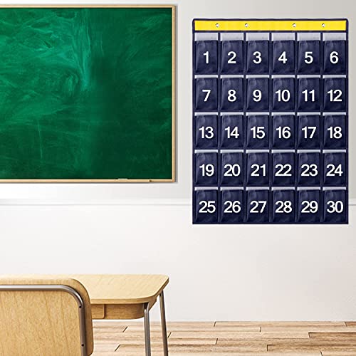 Organizer da Parete con 30 Tasche Numerate, Portaoggetti da Parete, Ideale per Classi, per Riporre Calcolatrici e Cellulari, Appendi Borse, Colore Blu Navy