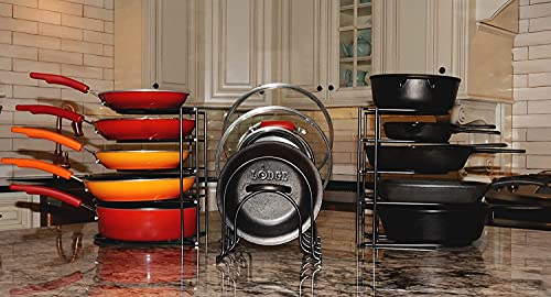 Ottima soluzione di archiviazione per il tuo armadio: il rack organizer per pentole può contenere fino a un massimo di 5 padelle. Organizza pentole, padelle, piatti, ghisa e altro ancora, la maggior parte dei coperchi con questo versatile rack che può essere utilizzato verticalmente o orizzontalmente sul bancone della cucina o nei tuoi armadi.
