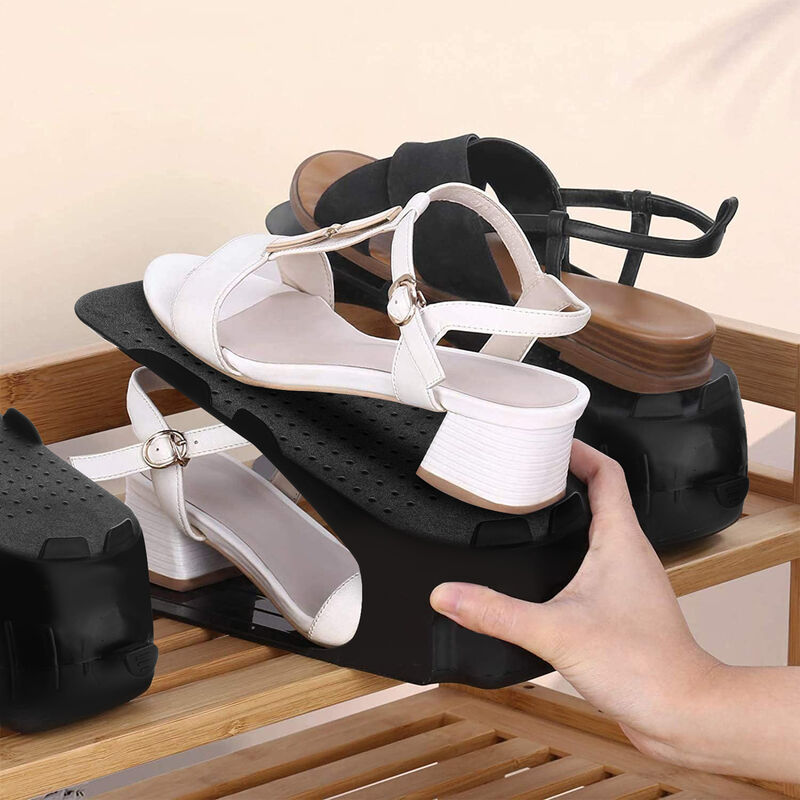L'organizer per scarpe è un prezioso accessorio per creare una piccola scarpiera all'interno del tuo armadio o del guardaroba, gestendo al meglio lo spazio. Posizionando una scarpa nella parte superiore e una nella parte inferiore, avrai sempre le tue calzature a portata di mano perfettamente appaiate e potrai individuarle facilmente. Risparmierai il 50% dello spazio nella tua cabina armadio, potendola sfruttare anche in altezza. Il portascarpe è realizzato in resistente polipropilene ed è costituito da particolari strisce rialzate che permettono alle scarpe di rimanere ferme senza scivolare verso il basso. Adatto a riporre scarpe sportive, scarpe da donna con tacco alto, ciabatte e sandali. Profondità Prodotto: 31.00 cm;