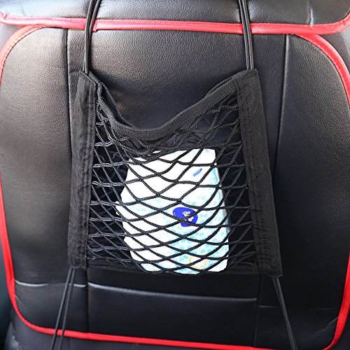 Organizer per auto con rete di protezione e tasca portaoggetti, modello universale e elastico, supporto per acqua/cellulare/giocattoli