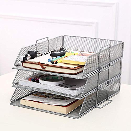 Organizer per riviste - Espositore per ufficio Impilabile per riviste in metallo Organizer per documenti da scrivania(argento)