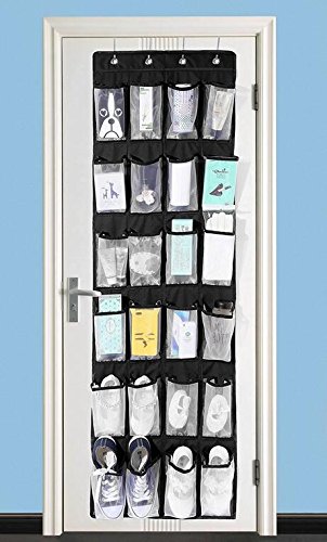 Organizer per scarpe con 24 tasche grandi in tessuto mesh, resistente, da appendere sulla porta, con 4 ganci in metallo Black