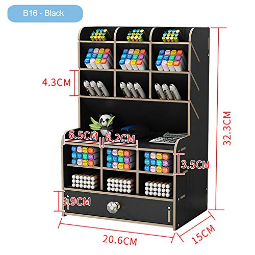 Organizer da scrivania in legno, molto capiente, portapenne da scrivania fai da te, scomparti per penne e articoli di cancelleria, organizer per ufficio, casa e scuola(B-nero)
