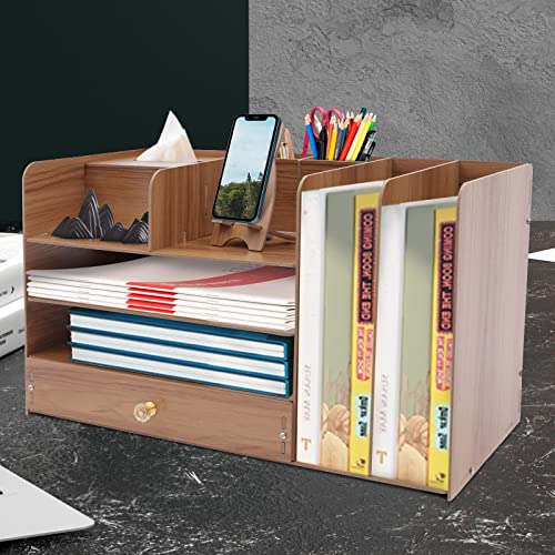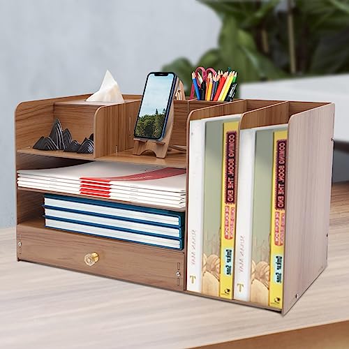 Organizer da scrivania | Porta documenti | Organizer da scrivania in legno con cassetti | Organizzatore multifunzione A4 | Cassettiera | Ciliegia | Organizer per ufficio | scomparti per ripiani