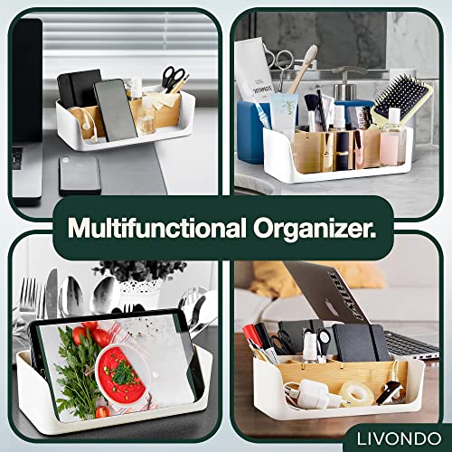 ECO, organizer da scrivania, organizer da tavolo, ufficio, cosmetici, supporto per cellulare e tablet, portapenne da scrivania, portatovaglioli, organizer per la casa (grande, bianco)
