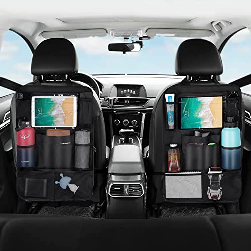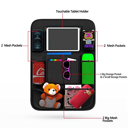 WWW, Organizer per sedile dell'auto, con tasche portaoggetti per il retro del sedile, 2 pezzi, con porta tablet tattile, 9 tasche portaoggetti per giocattoli, bottiglie, libri, oggetti da viaggio
