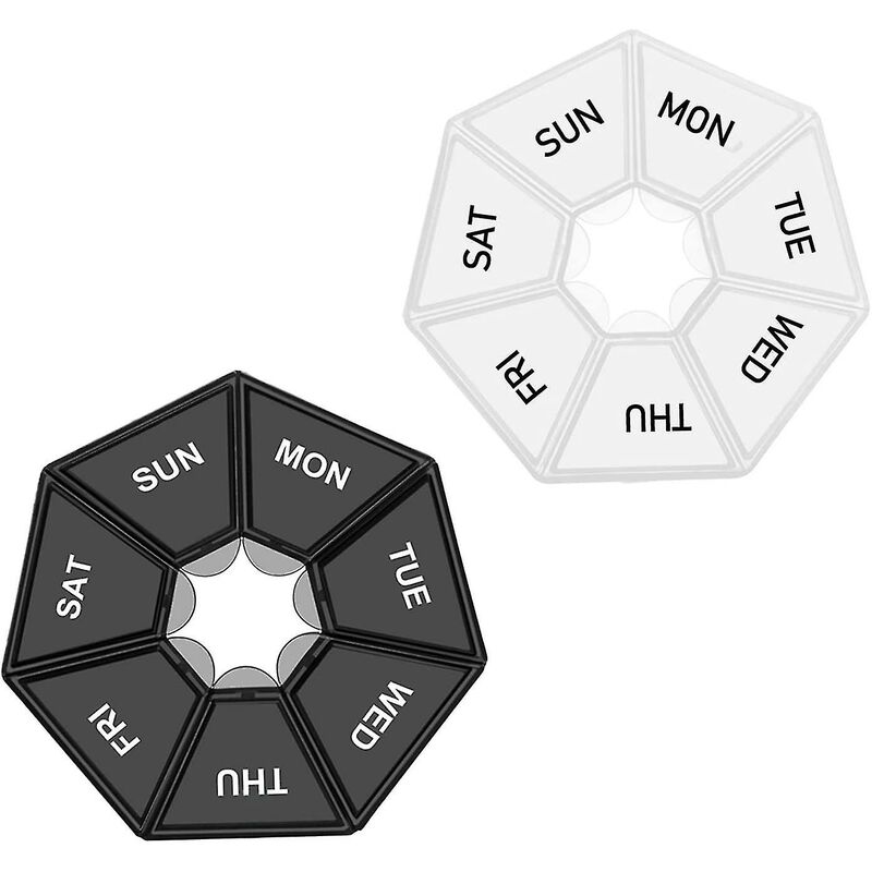 Il materiale è realizzato in plastica alimentare di alta qualità, non tossico, mantiene i tuoi farmaci al sicuro e organizzati. Dimensioni: 8,5*8,5*1,8 cm/3,35*3,35* 0,71 pollici, abbastanza piccolo da poter essere messo in tasca o in borsa, comodo da portare quando viaggi o fai attività all'aperto. Funzione: questo portapillole con design a 7 lati ti consente di gestire i diversi giorni della settimana, non perderai le medicine di un giorno. Non preoccuparti di versare medicine. Applicazione: questo portapillole è un ottimo compagno di viaggio. Abbastanza grande da contenere anche le pillole più grandi con spazio extra rimasto. Ideale anche per riporre piccoli gioielli o oggetti, come orecchini, perline, punte per nail art, ecc. . Regalo