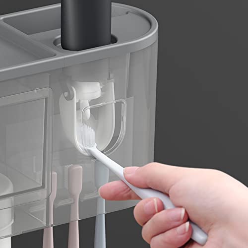 Organizer per spazzolini da denti, montaggio a parete, dispenser automatico per dentifricio, set di bicchieri magnetici, porta spazzolini elettrico, facile installazione (grigio, 2 tazze)