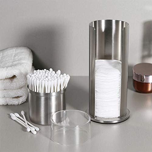 Organizer per tamponi di cotone, cilindro rotondo da bagno, in acciaio inox, con dispenser per tamponi di cotone, contenitore per trucchi, 18,5 x 7,3 cm