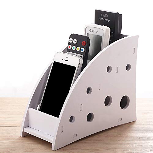 Organizer per telecomando a 4 scomparti, SourceTon Supporto per telecomando TV in composito di legno-plastica bianco con 4 ampi comparti