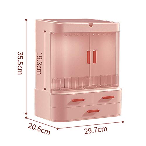DECO - Organizer per trucchi, 3 cassetti, moderno per gioielli e cosmetici, con specchio illuminato a LED, ideale per bagno, comò, vanità e piano di lavoro (Rosa quadrato)