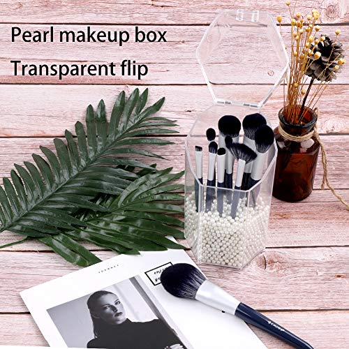 Organizer per il trucco, in acrilico per pennelli da trucco, con una confezione di perle, contenitore per pennelli da trucco, con coperchio, per bagno, camera da letto, piano di lavoro(bianco perla)