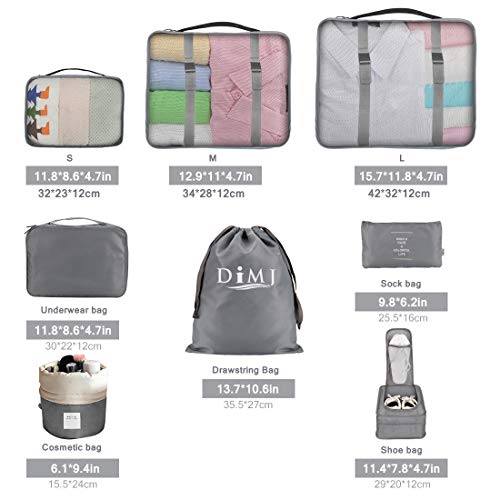 Organizer Valigia Set di 8, Organizzatori da Viaggio Cubi di Imballaggio Sistema di Cubo di Viaggio Perfetto di Viaggio Dei Bagagli Organizzatore (grigio)