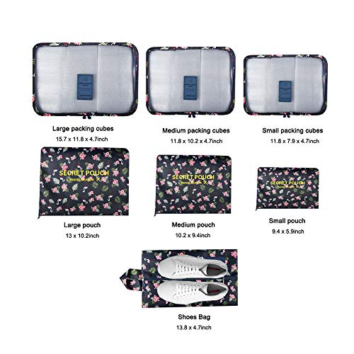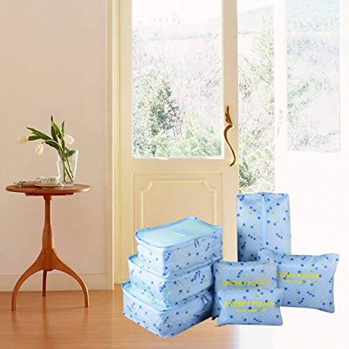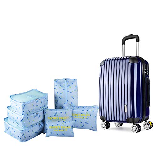 Set di 7 Organizer di Valigia per Viaggio, TOYESS Impermeabile Leggero Organizzatori da Viaggio, 3 Cubi per Imballaggio + 3 Buste + 1 Borsa per Scarpe, Ciliegia blu