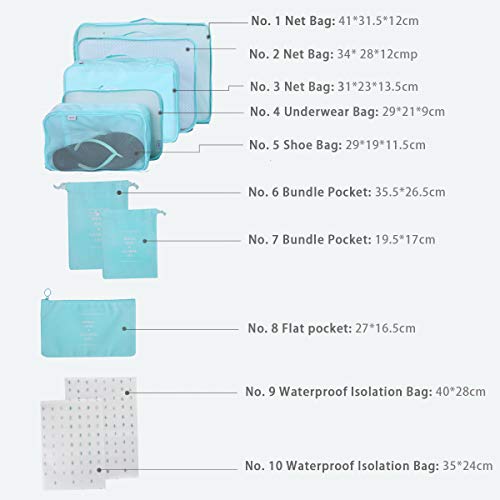 SXT, Organizer per valigie Blu Light Blue 10 pezzi