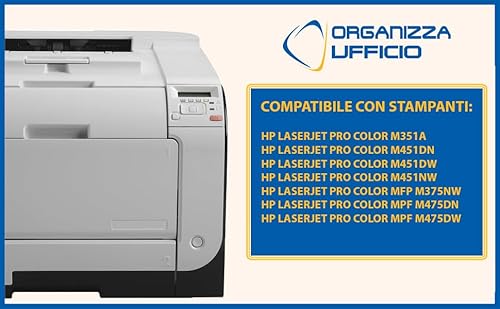 Organizza Ufficio CE410X (4.000 Pagine)/CE411A/CE412A/CE413A (2.200 Pagine) KIT 4 Toner Compatibili con HP LASERJET PRO COLOR M351A M451DN M451DW M451NW MFP M375NW MPF M475DN MPF M475DW