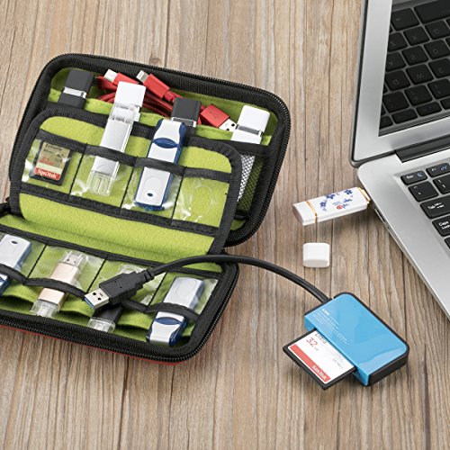 【METTE TUTTO IN ORDINE】L'organizzatore cavi ci sono 4 tasche a rete, 8 tasche e 2 grandi scomparti. Ideale per cavi, USB chiavetta, scheda di memoria SD CF TF SIM, lettore di schede, btteria, caricabatteria e smartphone ecc.