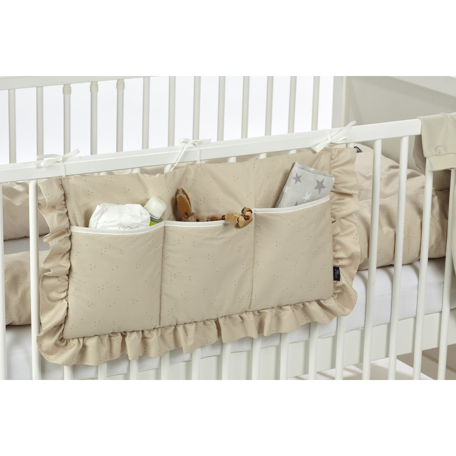 Dettagli del prodotto: Organizzatore per la culla Con 3 scomparti separati Facile da fissare con nastri Per riporre giocattoli, prodotti per la cura del bambino e molto altro. Materiale e cura: Materiale: 100% cotone (organico) Imbottitura: 100% poliestere Lavabile fino a 30 °C Dimensioni: Dimensioni (lunghezza x larghezza): 70 x 34 cm