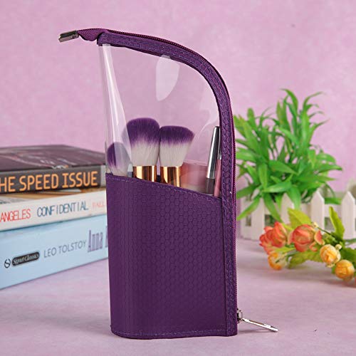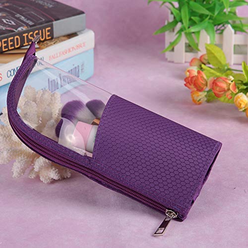 Organizzatore per pennelli per trucco, astuccio per penne da ufficio, custodia in plastica trasparente con cerniera, piccola borsa per articoli da toeletta(Viola)