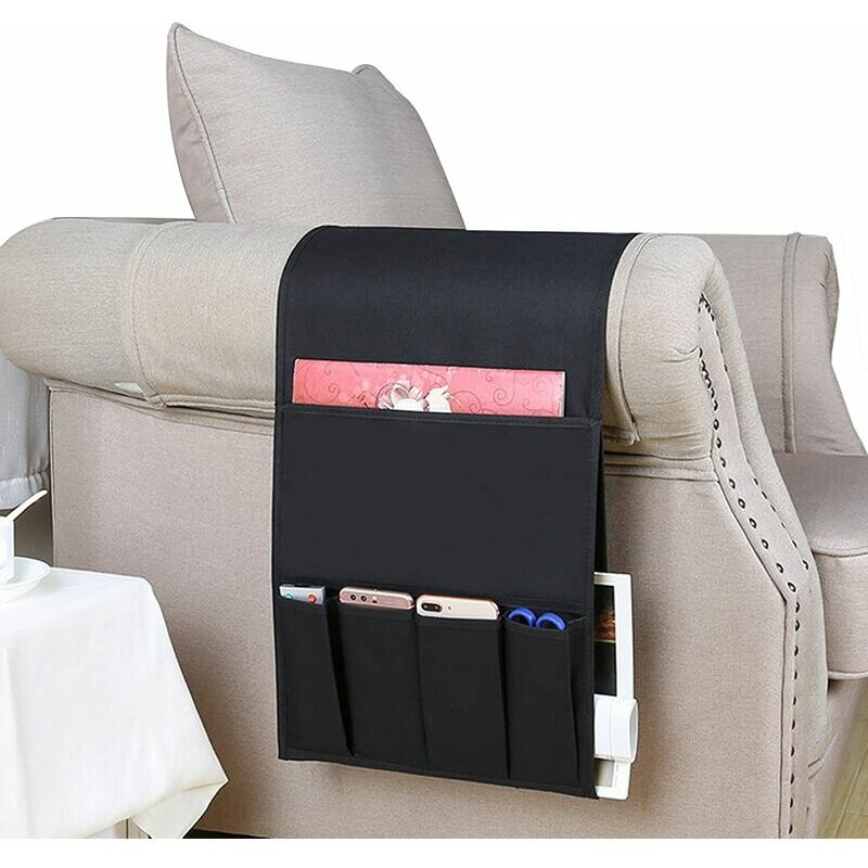 Materiale Premium - L'organizzatore del bracciolo del divano è realizzato in tessuto oxford selezionato, che è impermeabile e altamente resistente senza perdere la sua morbidezza, quindi puoi arrotolarlo e portarlo con te. È anche resistente alle rughe, al colore e al restringimento. Il nero classico può soddisfare le tue esigenze per diversi stili di divani. 【Grande capacità】Il nostro copridivano ha 6 tasche. 4 tasche piccole per piccoli oggetti come telefono e telecomando, 1 tasca grande per oggetti grandi come libri e riviste. Inoltre, è rimasta una grande metà inferiore, che può essere utilizzata per riporre oggetti alti come rotoli di carta e asciugamani. 【Antiscivolo】Il design in lamiera di ferro antiscivolo può impedire la finitura degli oggetti cadere dal bracciolo del divano. Basta mettere il foglio di ferro sul cuscino del divano e può essere molto resistente e durevole. 【Facile da pulire e da usare】Il nostro organizer laterale da appendere è lavabile in lavatrice, non