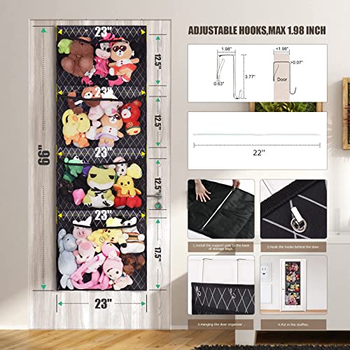 【Contenitore per animali di peluche di grande capacità, per mantenere la stanza in ordine e spaziosa】 Le 4 grandi tasche portaoggetti traspiranti dimensioni: 168 * 59 cm, possono essere appese comodamente dietro la porta e contenere tonnellate di giocattoli per bambini, pannolini, giocattoli da bagno, articoli da toeletta, prelibatezze e altro ancora. L'organizer sopra la porta con tasche renderà lo spazio ordinato e spazioso.