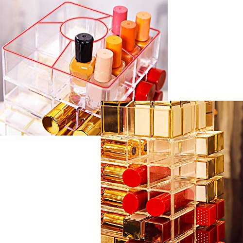Organizzatore di Rossetti Trucco Acrilico Conservazione di bellezza 53 Spazio Espositore per Rossetto Supporto per Rotazione a 360 ° per Supporto per Smalto per Labbra