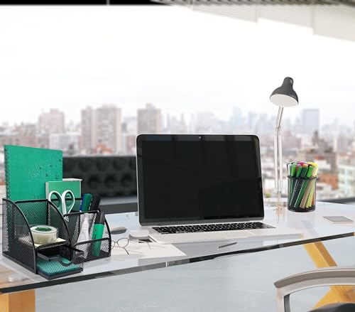 Organizzatore da Scrivania, Organizer da Scrivania in Rete Metallica Con 6 Scomparti e Cassetto + Portapenne / Kit di 72 Accessori, Set Per Matite, Telefono, Cancelleria, Graffette e Cucitrici (Nero)