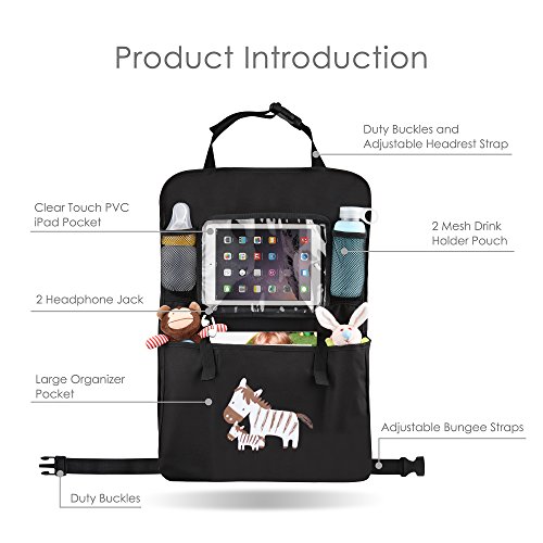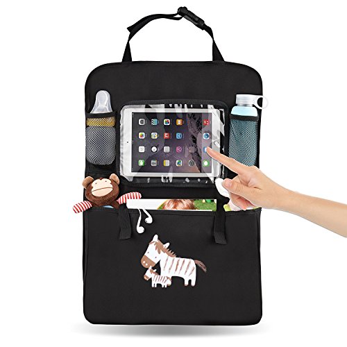Organizzatore Sedile Posteriore Auto con Touch Screen Tablet/iPad Holder Safe&Care, Spazioso, Universale e Facile da Montare, Protettore Sedile, Kick Mat, Organizzatore Sedile Auto