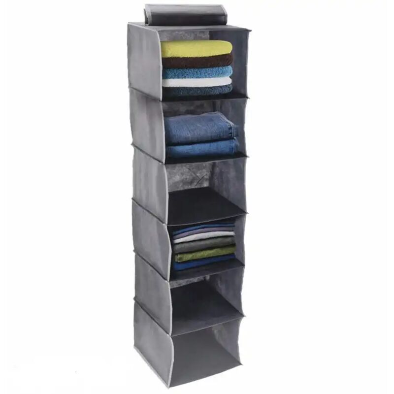Il pratico organizer appendibile per armadio sfoggia 6 scomparti, ideali per contenere i vostri accessori in ordine e sempre pronti all'uso. Da appendere nell'armadio Facile da attaccare utilizzando un anello in velcro o un gancio Per riporre in modo ordinato, ad esempio, asciugamani, jeans, maglioni, scarpe e simili. Diviso in 6 scomparti Sottoscocca rinforzato Pieghevole e riponibile per risparmiare spazio Dimensioni: circa 120 cm x 30 cm x 30 cm Materiale: 100% poliestere