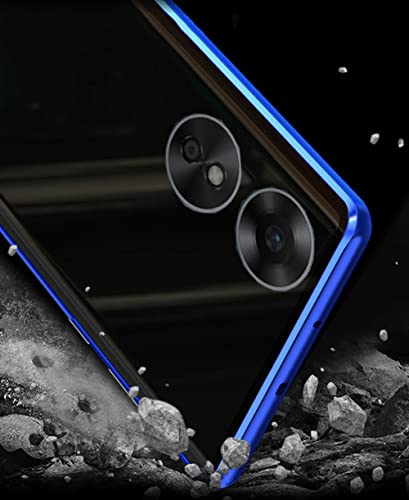Orgsty per OPPO A17 (6.56") Cover, Custodia Adsorbimento Magnetico Protettiva, Fronte e Retro in Vetro Temperato Trasparente Cover Paraurti in Metallo 360 Gradi Cover, Blu