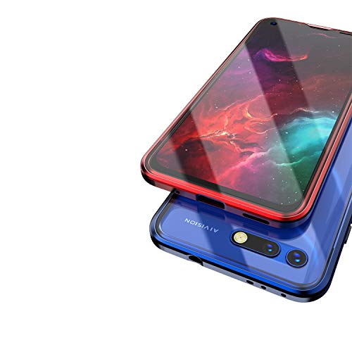 Orgstyle Custodia per Honor View 20/V20, Adsorbimeto Magnetico Tech Cover Cornice Metallo, Vetro Temprato Trasparente Anteriore e Posteriore, Protezione Tutto Corpo per Honor View 20/V20 - Blu