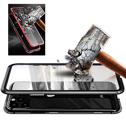 Orgstyle per iPhone 11 Cover, Custodia Adsorbimento Magnetico Protettiva, Fronte e Retro in Vetro Temperato Trasparente Cover Paraurti in Metallo 360 Gradi Full Body Cover, Nero