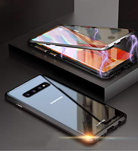 Orgstyle per Samsung Galaxy S10 Plus - Cover protettiva protettiva trasparente in vetro temperato anteriore e posteriore, ultra sottile a 360°, con telaio in metallo, magnete incorporato, colore: Nero