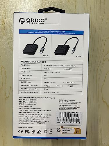 ORICO Adattatore per cavo SATA, da USB C a SATA III, per dischi rigidi HDD/SSD da 2,5", supporta UASP, con cavo da 100 cm (S1-3C-10)