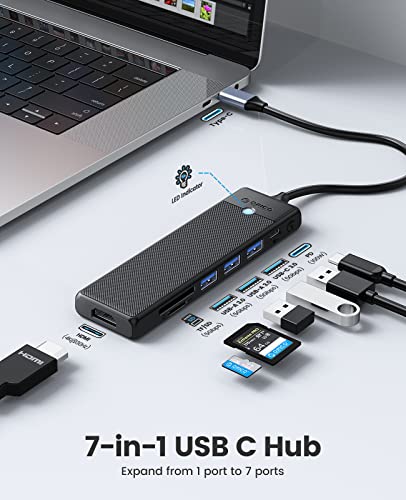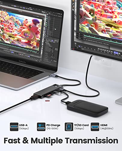 ORICO HUB C USB, adattatore 7 in 1 USB C Docking Station con 100W Power Delivery, 4K@30Hz HDMI, lettore di schede SD/TF, porte dati 3xUSB A 5Gbps per MacBook M1, iPad Pro, Surface Pro, ecc