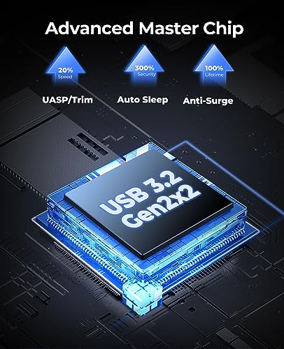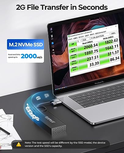 【Fino a 20 Gbps con UASP】: USB3.2 Gen2x2 Type C Interfaccia M.2 Shell NVME: fino a 20 Gbps Extreme Speed, la velocità teorica di lettura e scrittura può raggiungere 2000 MB/s. Ci vogliono solo 1-2 secondi per lo streaming di film HD 2G. (Si prega di utilizzare l'interfaccia Gen2x2 USB3.2 per ottenere una velocità di 20 Gbps. Compatibile all'indietro con USB3.1, la velocità USB3.0 è 10 Gbit/s o 5 Gbit/s.