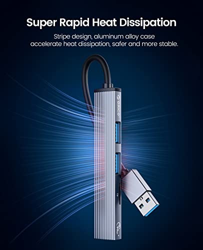 ORICO Mini Hub USB 1 USB 3.0 +3USB 2.0, USB Adattatore Station con cavo da 15 cm, Hub dati portatile ultra piatto, per laptop, iMac Pro, MacBook Air, Mac, PC portatile, splitter USB in alluminio